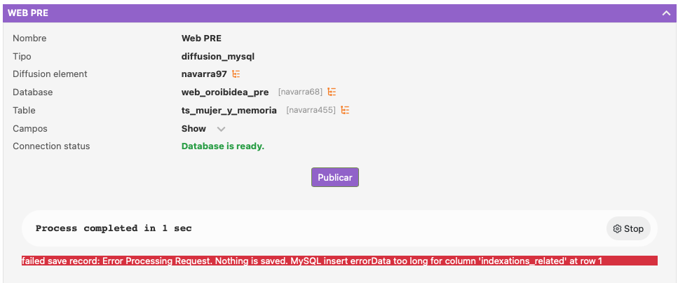 Therefore, this column can accommodate 65.536 characters. However, if the public data exceeds this limit, the error appears. (i.e. when the public section contains numerous indexations).